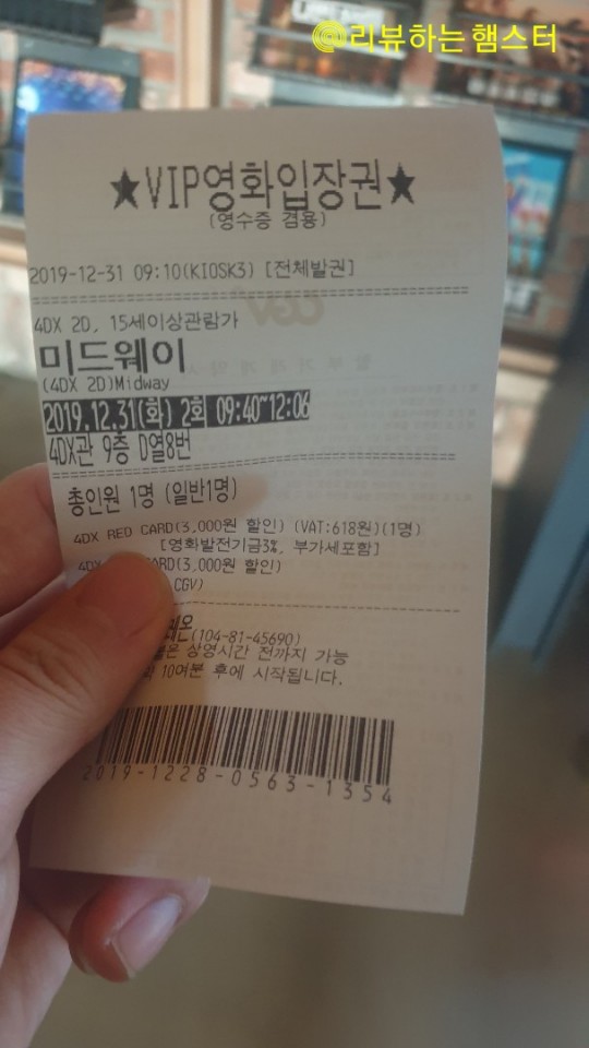 이번에 본 영화는 미드웨이이다. 올해의 마지막 영화 중 하나로 기억에 남을건데, 마침 4DX로 개봉한다고 해서 4DX를 찾아보다가 조조영화로 하는데가 있어서 CGV신촌아트레온 4DX관으로 갔다.