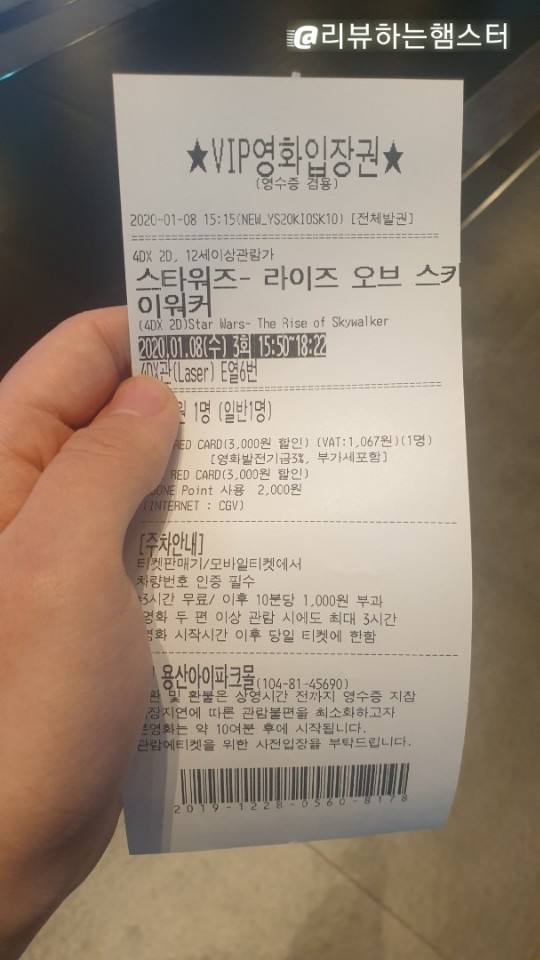 예매를 2019년 말쯤에 미리 했으며, 첫 영화를 CGV용산아이파크몰 4DX로 결정하고