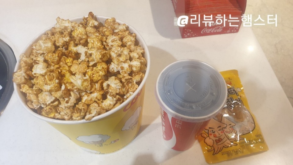 팝콘에다가 섞어먹으니 먼가 오묘한 맛이 나서 그런지 맛은 있었다.