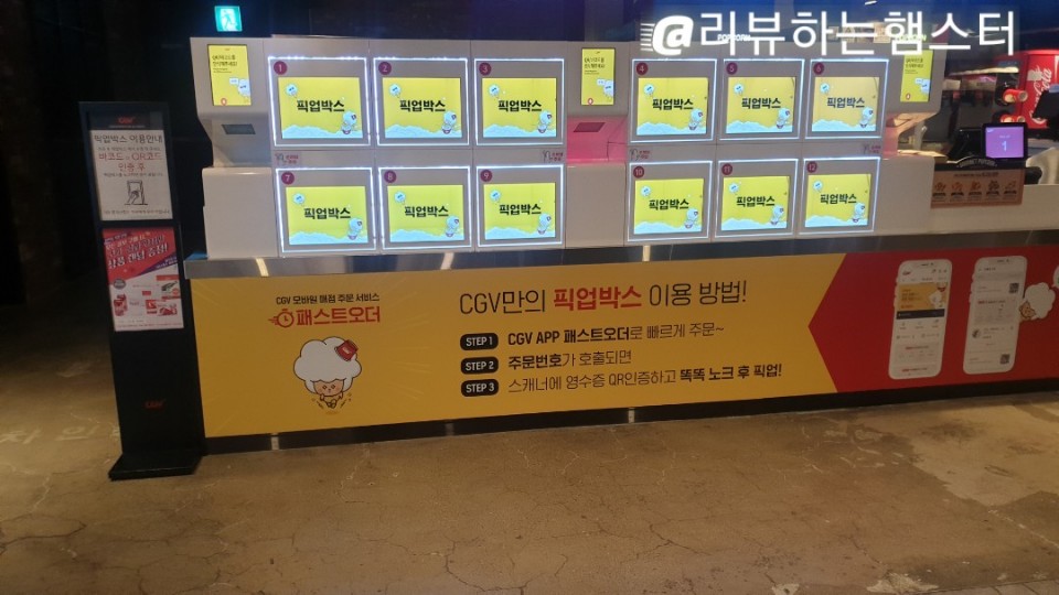 저번주만 했어도 없었던 픽업박스가 오픈되었다. CGV여의도에서 패스트오더로 주문시 이렇게 픽업박스로 해서 나온다.