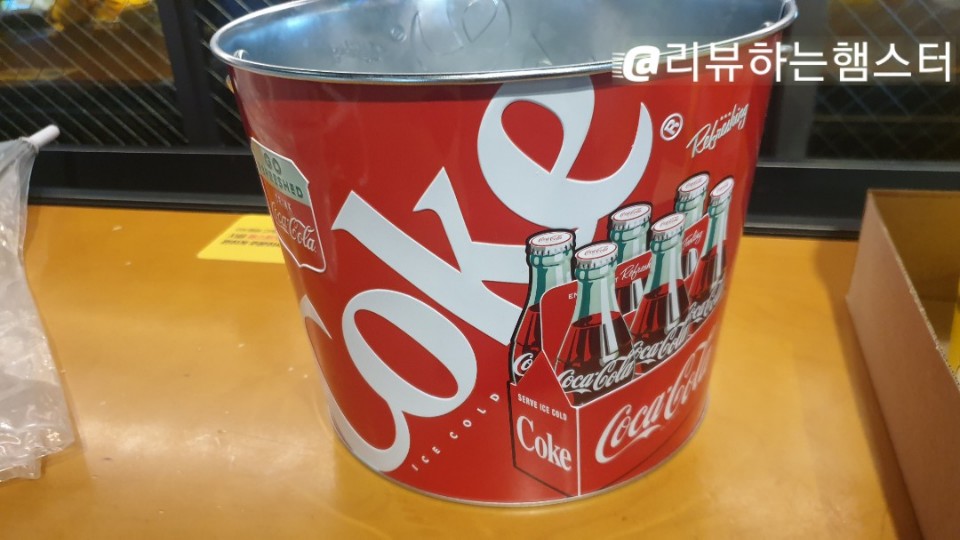 코카콜라 양동이라고 불러야될지 모르겠지만 몇년전에 코카콜라 세트팔때 준 것으로 추측되는 양동이이다. 코카콜라 좋아하는사람에게는 한정제품이고 여기다가 물을 담던지 팝콘을 담던지 등 다양한 용도로 사용할 수 있을것 같다.