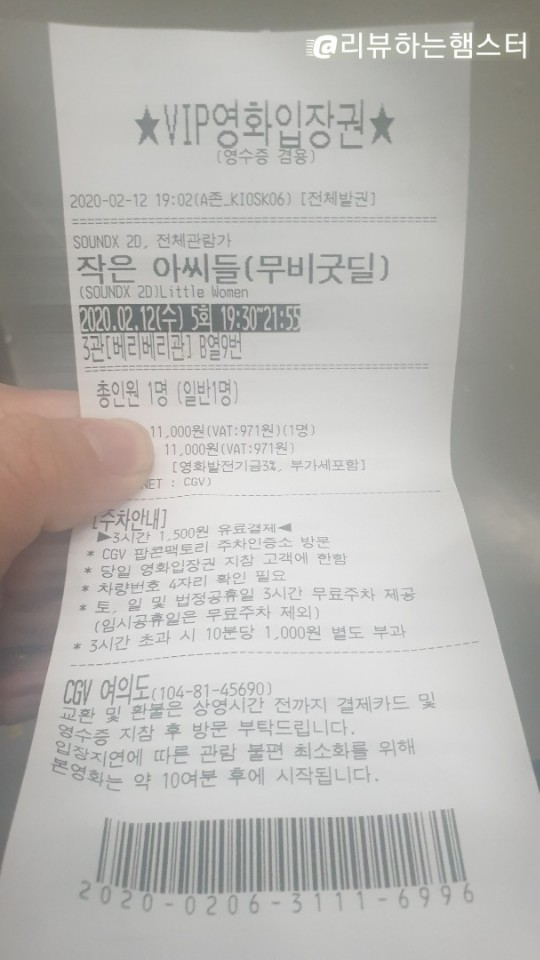 시간은 19시 30분영화로 CGV여의도로 예약했다. 작은아씨들이라고 해서 무슨영화인는 1도 모르는 글쓴이가 직접본 결과는 어떨지 아래에서 살펴보고자 한다