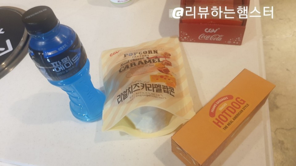 팝콘 L를 먹었는데도 불구하고 저녁을 먹을때가 되서 순수마일드세트(리얼치즈카라멜팝콘(500원추가)+파워에이드)+오리지널 핫도그(3000원 원가 4500원)을 시켜서 총 9500원 먹었다.