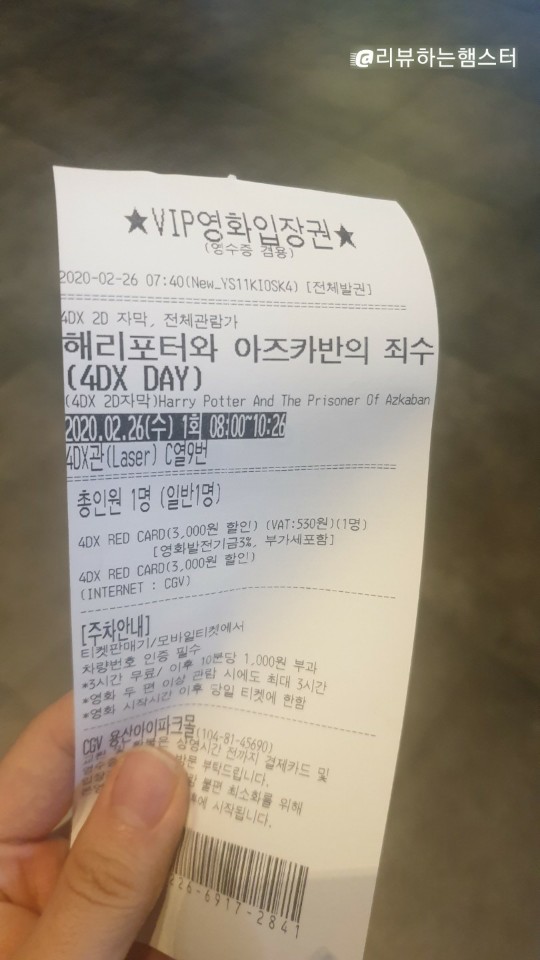 이번에 영화를 보고나서 매표소에가서 지류티켓(모바일티켓X)를 제시하면 해리포터와 아즈카반의 죄수 포스터를 준다고 한다. 4DX를 보고나서 포스터도 가져가는것을 추천한다.