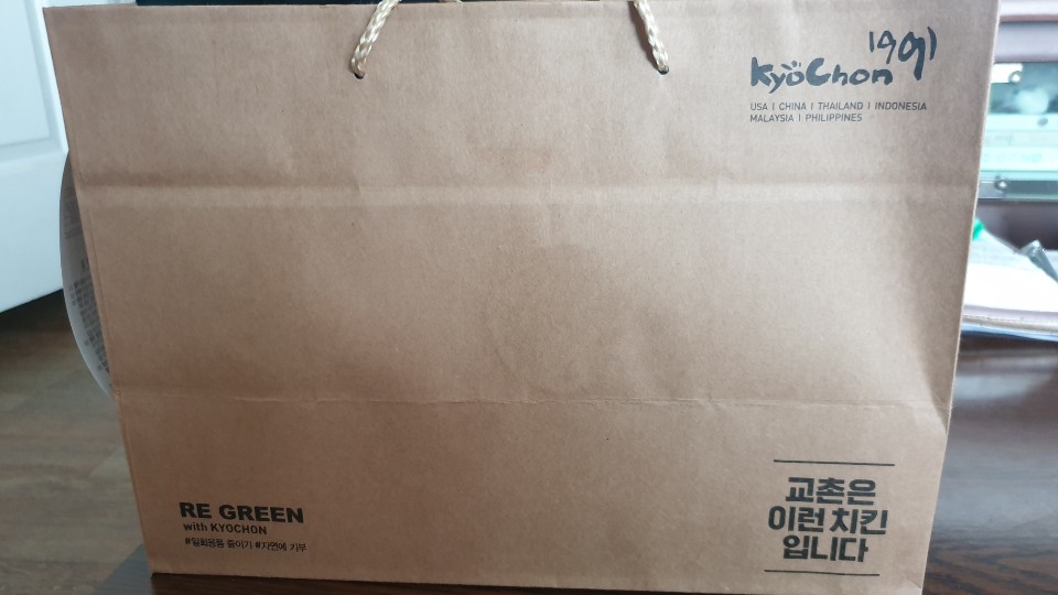교촌치킨을 시키면 이렇게 배달이 온다.