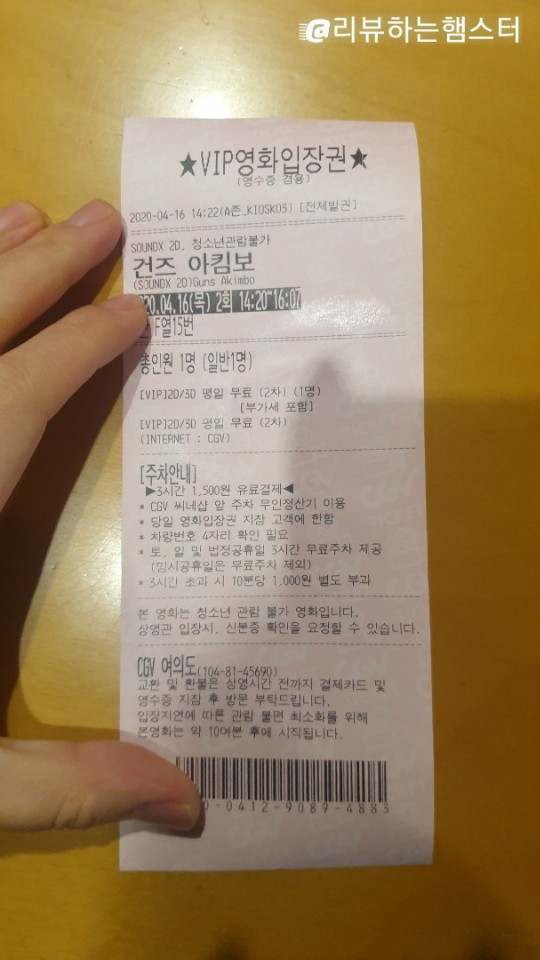 이번에는 CGV여의도를 가서 보기로 결정하였으며, 글쓴이는 한가한 오후타임에 예약했다.