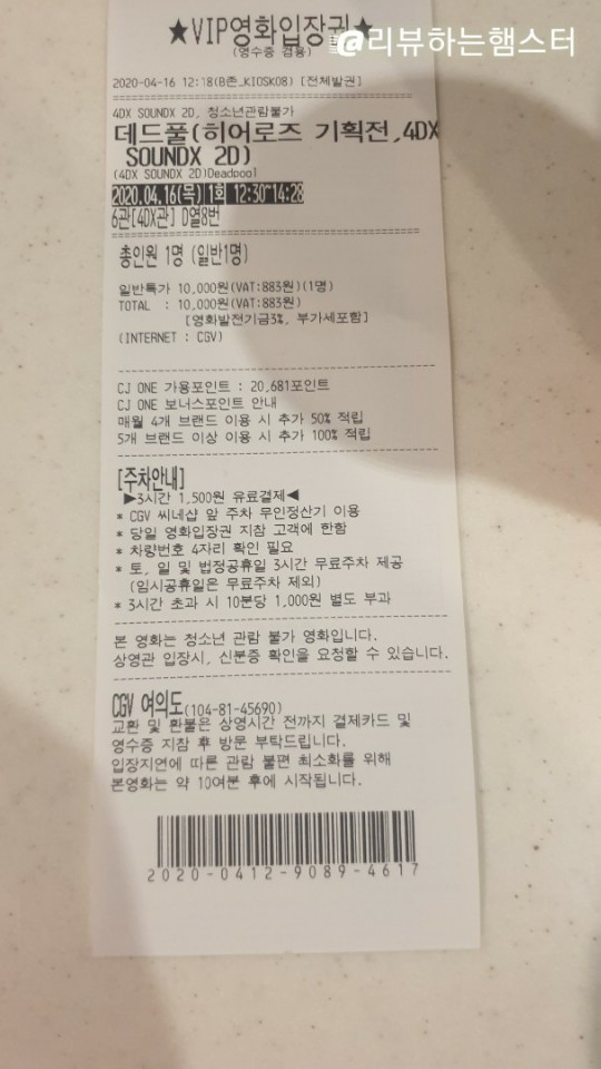 이번에 CGV여의도에서는 데드풀을 4DXSOUNDX2D를 보기로 했다. CGV용산아이파크몰은 이날 4DX영화가 없어서 그나마 좋은 CGV여의도에서 봤다.