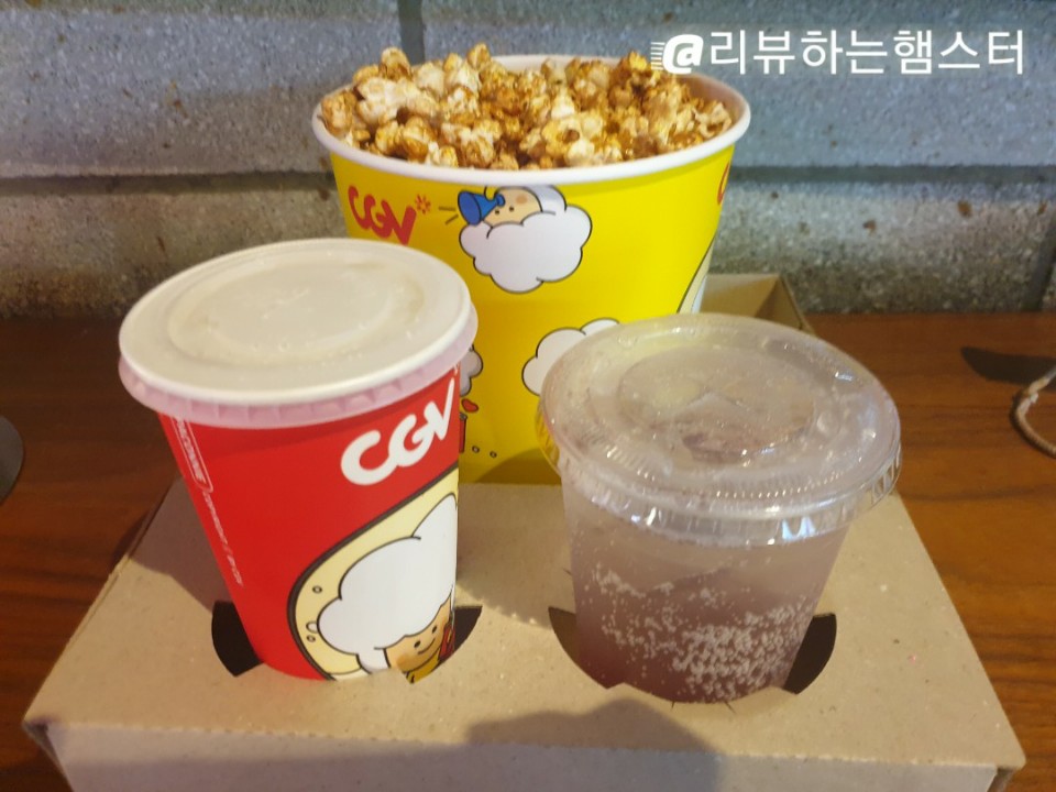 글쓴이는 달콤팝콘에 에이드로 바꿨는데 추가비용까지 다 깎여서 쿠폰으로 공짜로 먹었다.
