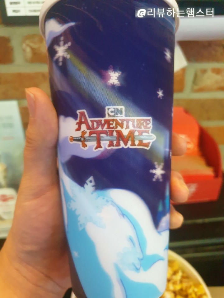 그러다보니 음료컵이 당첨되서 놀랬는데.. 이건 어드벤처타임 3D음료컵인것 같다.
