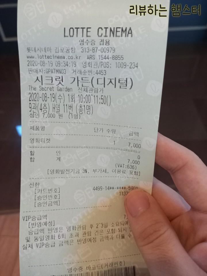 원래계획은 국제수사 SOUNDX2D로 리뷰로 찾아뵐려고 했으나 불과 며칠전에 확진자가 폭증한 관계로 개봉이 연기되었다. 그래서 이번에 볼 영화를 찾고 있던 글쓴이는 한마디로 총체적 난국상태였다. 하지만 글쓴이는 그래도 개봉을 강행하는 영화를 선택하였고, 그 영화는 전체관람가인 영화 시크릿가든이였다. 조조시간을 최대한 노려서 사람 없을때 영화를 보려고 한 결과 롯데시네마 김포공항에서 보는게 더 이득인 것 같아서 롯데시네마 김포공항으로 갔다.