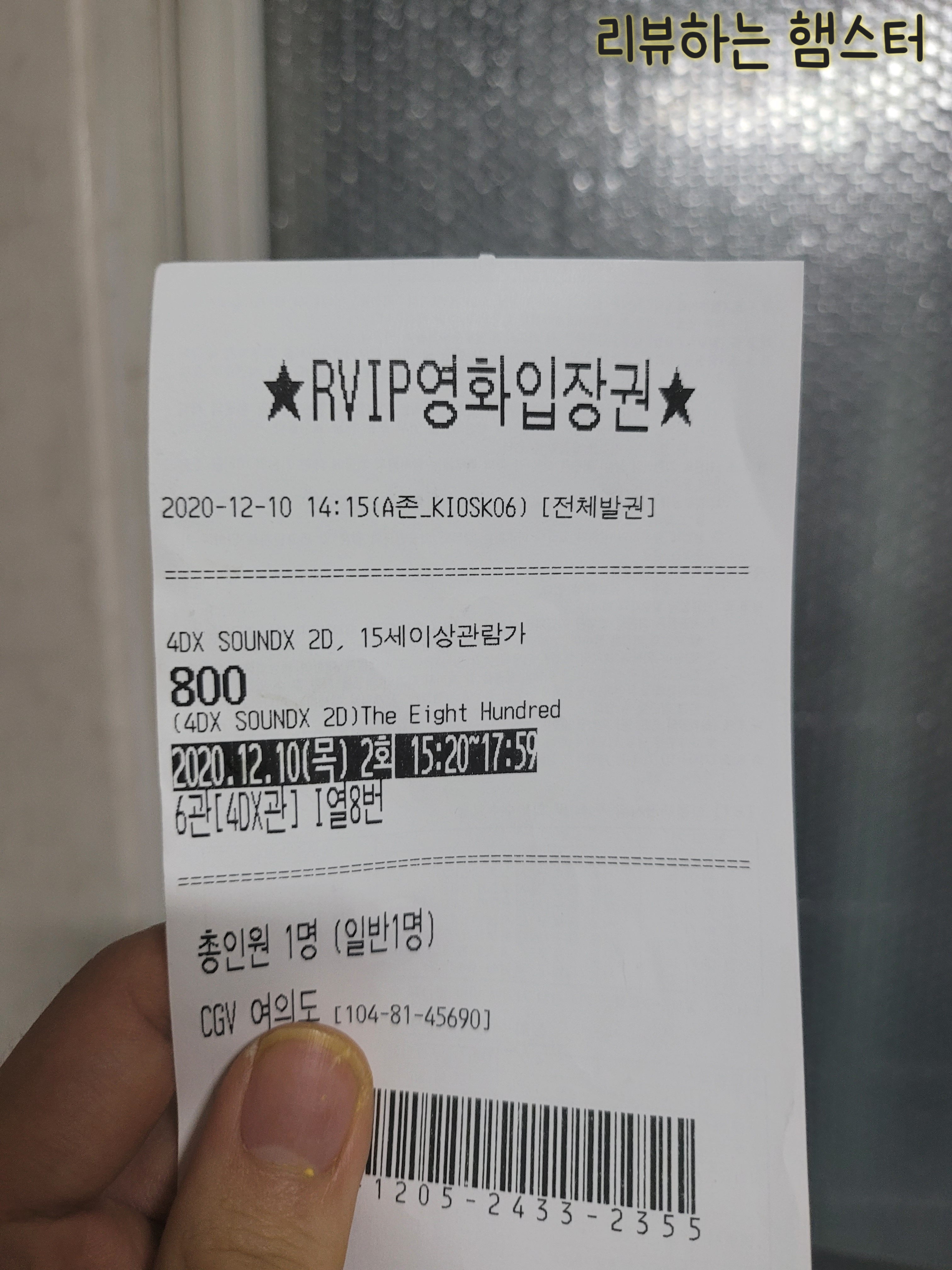 이번에 본 영화는 영화 800이다. 그냥 숫자만 보고 예매했고, 아무런 후기도 안보고 봤다.