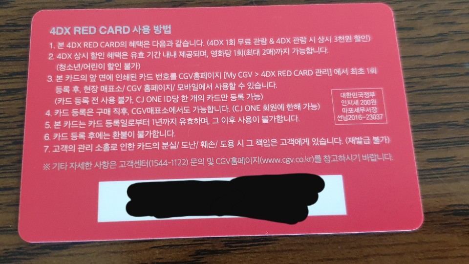 CGV 4DX 레드카드, 4DX 할인되서 좋은 것! 본문