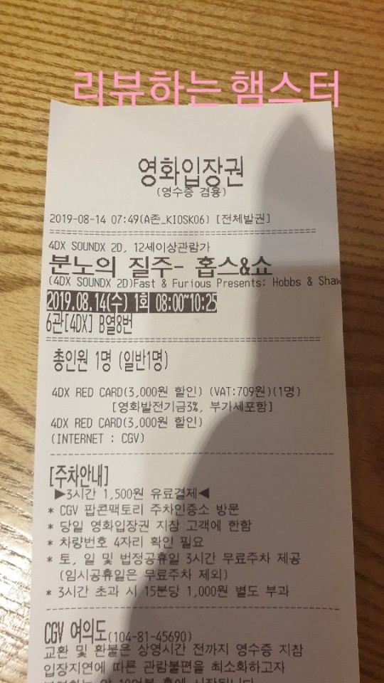 19.08.14 분노의질주:홉스&쇼 4DXSOUNDX2D 후기(기묘한 조합) 본문