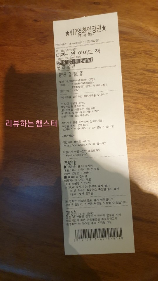 글쓴이가 9월 10일 자로 VIP가 되었는데, 오늘 티켓뽑아보니 VIP영화입장권으로 출력되었다.