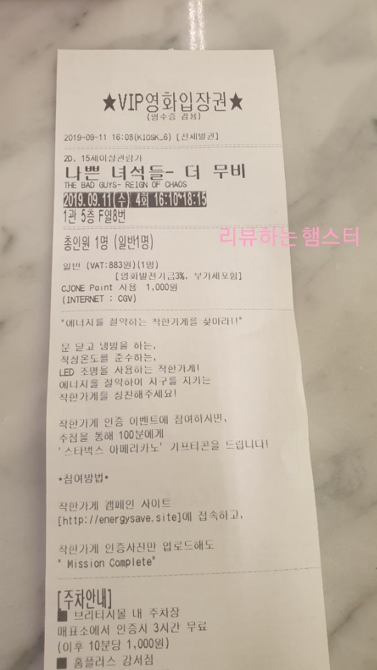 타짜볼때는 명당자리가 아닌곳에 앉았지만, 나쁜녀석들볼때는 명당자리에 앉았다.