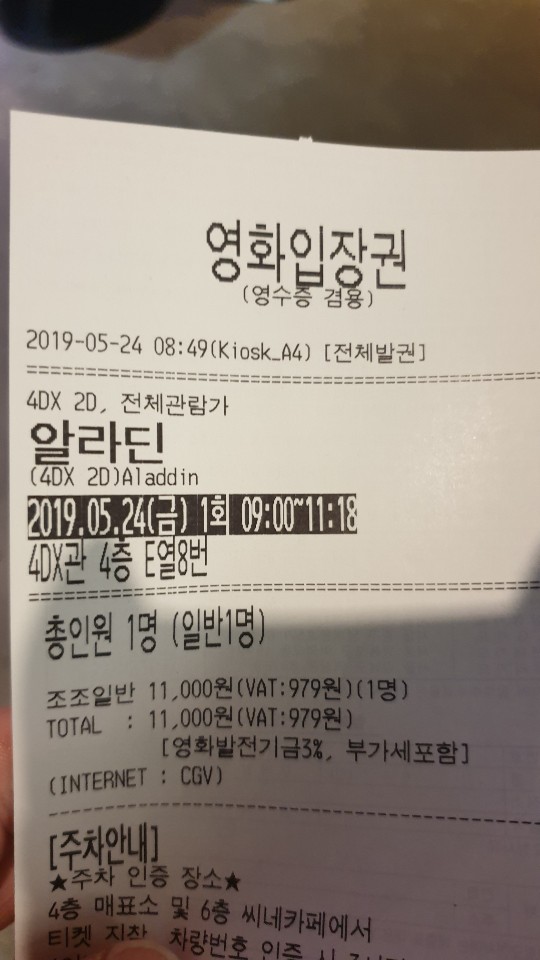알라딘은 4DX로 꼭봐야되겠다고 생각해서 조조로 보기로 결정하였다.