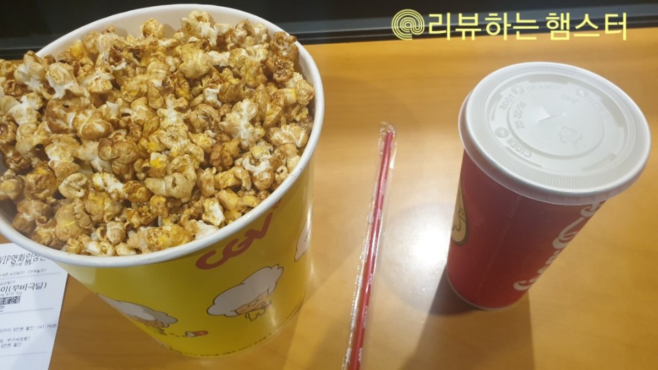 달콤팝콘을 50분만에 다먹었구 음료수도 1시간만에 다먹었다. 다음에 L사이즈를 시켜야되겠다.
