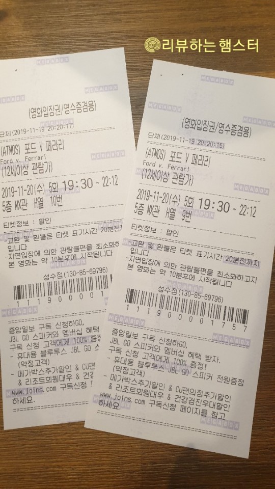 이번에 본 영화는 포드V페라리 영화이다. 기대도 안하고 응모했다가 걸린 영화였는데, 특히 이번에 주목해야될 점이 MX관이라는 점인것과 메가박스가 이번에 새로 오픈한 성수점이라는 점이다.