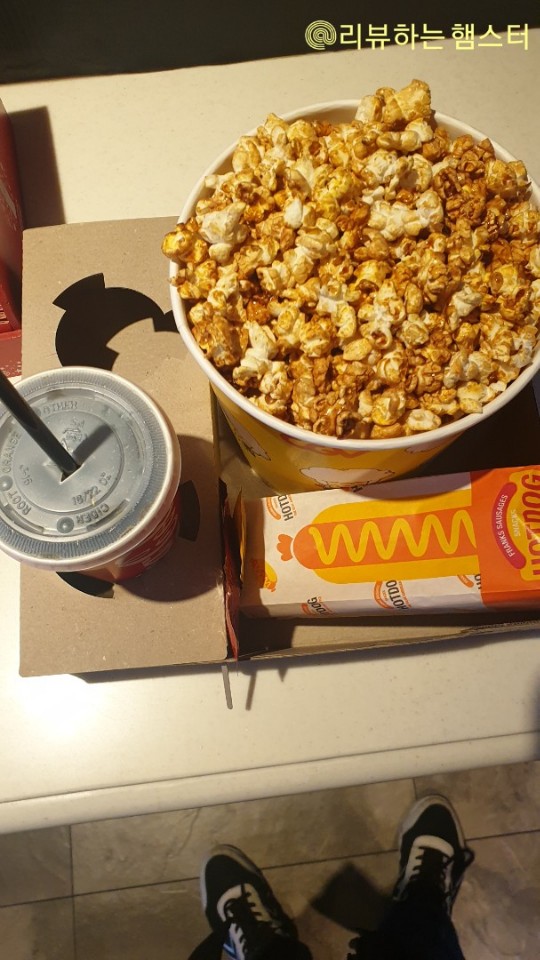 혼자먹으려고하니 끝날때까지 남아서 허겁지겁 먹었다. 생각보다 오래 팝콘을 먹는다는 점이