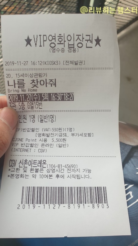 이를 보기 위해서 어제 팡팡놀 장소 근처인 CGV신촌아트레온에 찾아갔다.