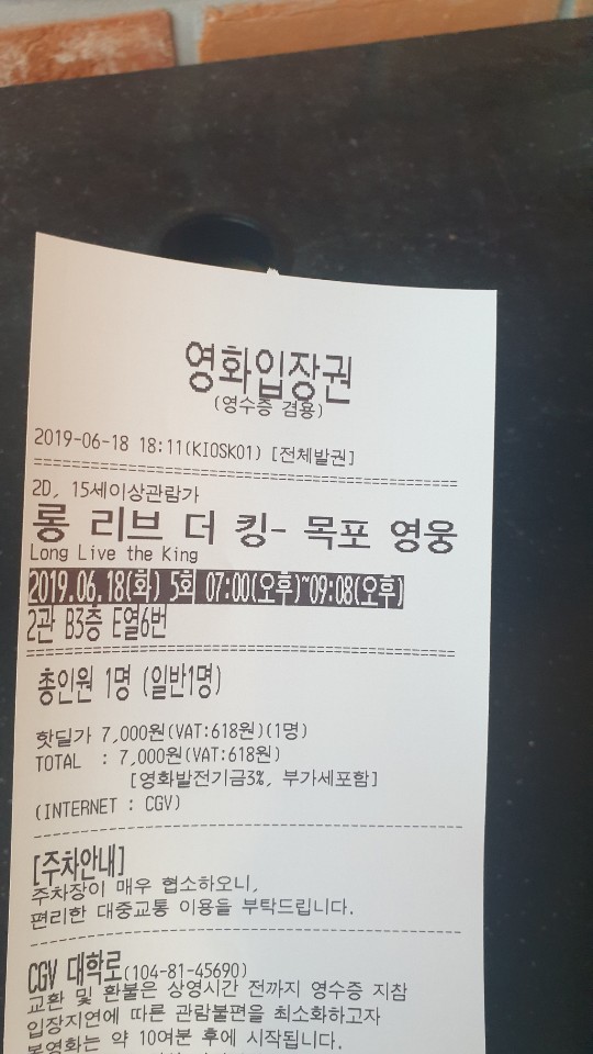 평일 저녁인데 7000원에 볼수있다니 놀랍다.